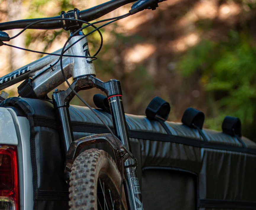 seu design conta com duas áreas de proteção tripla. A primeira protege o quadro da bike de toda borda da caminhonete que fica em contato com o tubo inferior da bike. A segunda na área da suspensão em contato com a tampa, evitando qualquer tipo de amassado na tampa de sua caminhonete e em seu quadro.